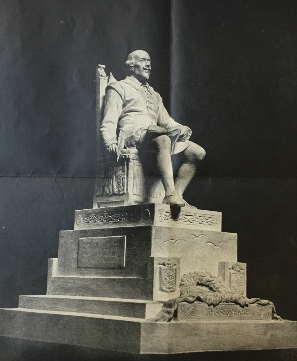 Hamlets tilknytning til Helsingør var også baggrunden for planen om at rejse et Shakespeare-monument i byen. I 1903 udførte billedhuggeren Louis Hasselriis (1844-1912) en statue, der viser Shakespeare siddende i dybe tanker med pen og papir i hånden. Det var først tanken, at statuen skulle opstilles på Kronborgs skanser, men siden faldt valget på Marienlyst slotspark. For at skaffe midler til at støbe gipsudgaven af statuen i bronze blev der nedsat en komité, der blandt andre havde Kronborgs kommandant, oberst C.W. Christensen, som medlem. Men trods stor velvilje fra såvel dronning Alexandra som flere af tidens kulturpersonligheder lykkedes det ikke at realisere projektet. Så heller ikke denne gang kom Shakespeare til Helsingør.