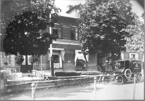 Bagermester Johannes Larsen drev Bageri & Konditori i en længere periode før og efter 1925. Billedet viser etablissementet, som det så ud omkring 1925 (Bilmodellen), - Bagerbilen skulle selvfølgelig med på billedet. Der udskænkes Tuborg-Øl iflg. de opsatte emaljeskilte. På ruden ind til konditoriet står: TEA ROOM.