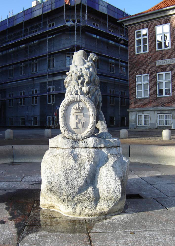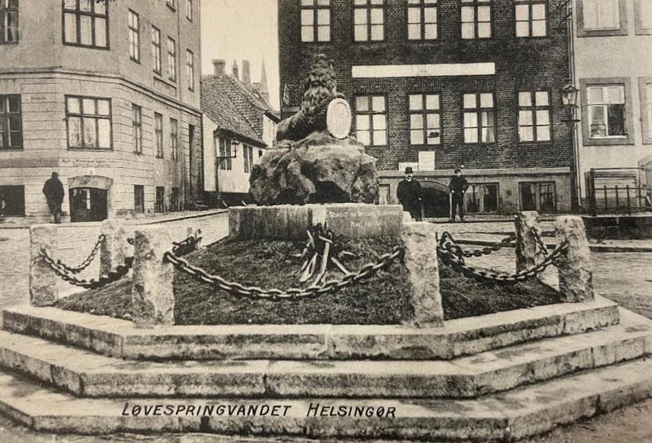 LøvespringvandetWiibroe Plads blev opsat i 1829 af Det ferske Springvands Compagnie i Helsingøer og var byens første offentlige kunstværk. Vandkompagniet var et privat foretagende, der tjente penge ved at sørge for byens vandforsyning og ikke mindst vand til skibene, der provianterede i Helsingør samtidig med at de betalte Øresundstold.
