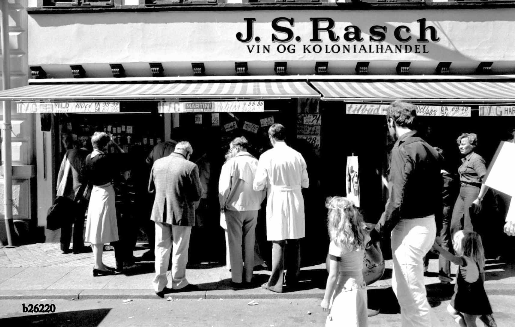 Kø foran Rasch Stengade 47. Foto: Jørgen Rubæk Hansen 25/7 1978