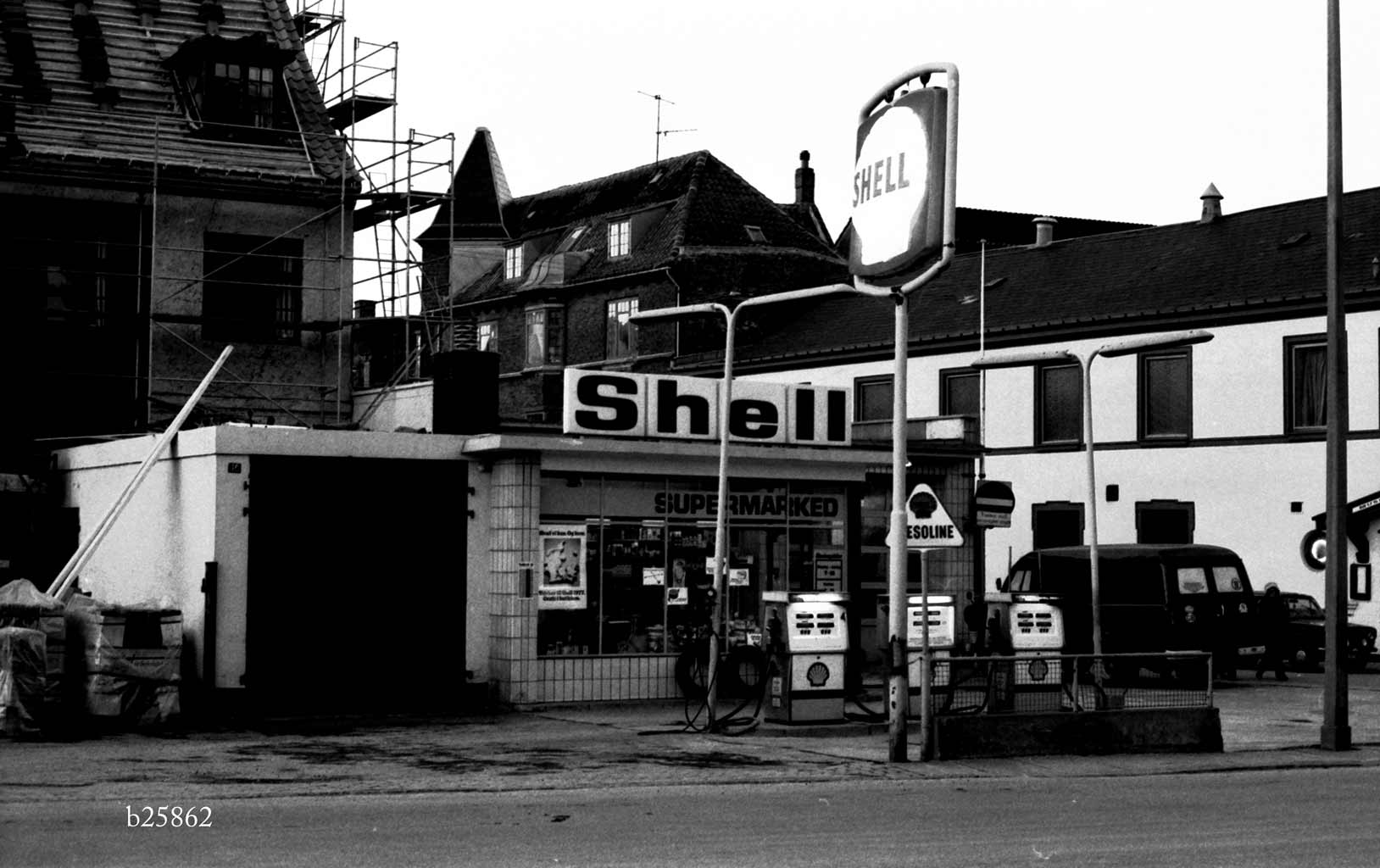 Shell benzintanken på hjørnet af Jernbanevej og Hovedvagtsstræde skal lukke. Den er fotograferet af Jørgen Rubæk Hansen den 27/2 1977