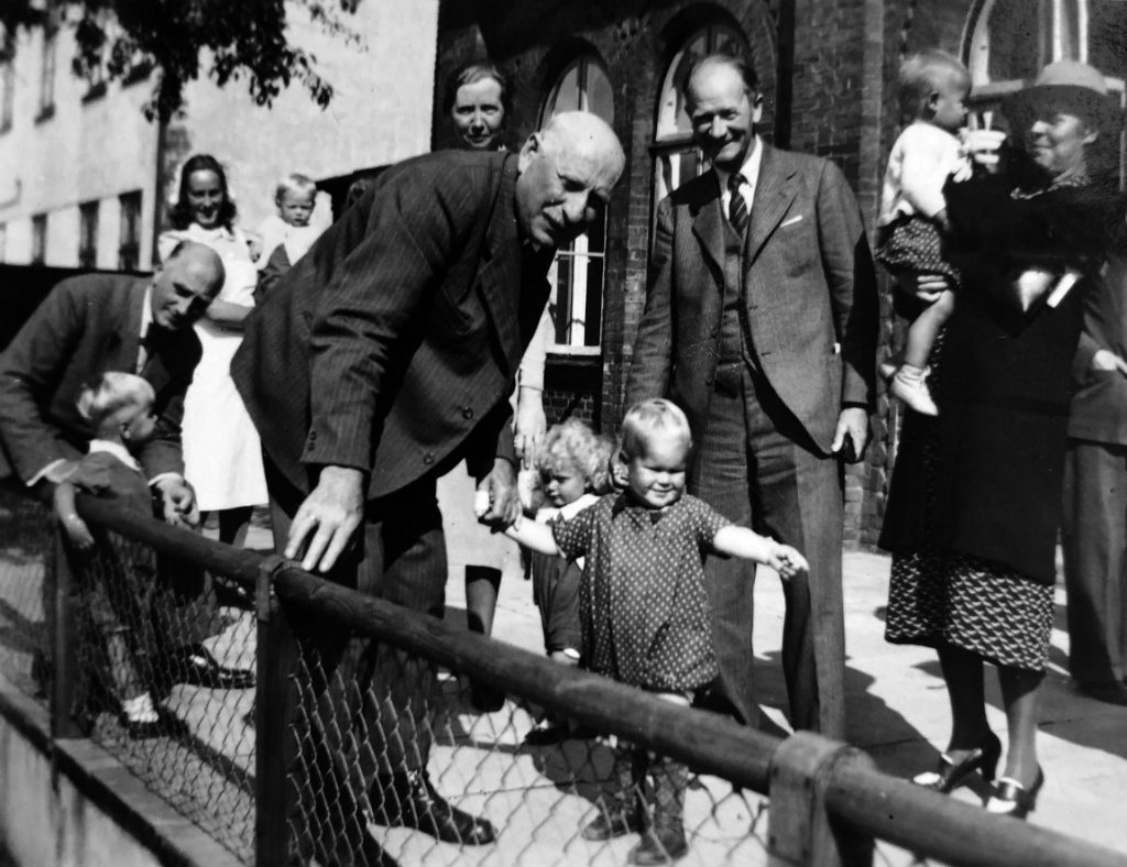 148 KB | Borgmester Peder Christensen besøger Børnegården, Trækbanen 16, i 1940'erne. Gengivet med tilladelse fra Helsingør Kommunes Museer. | 1 |