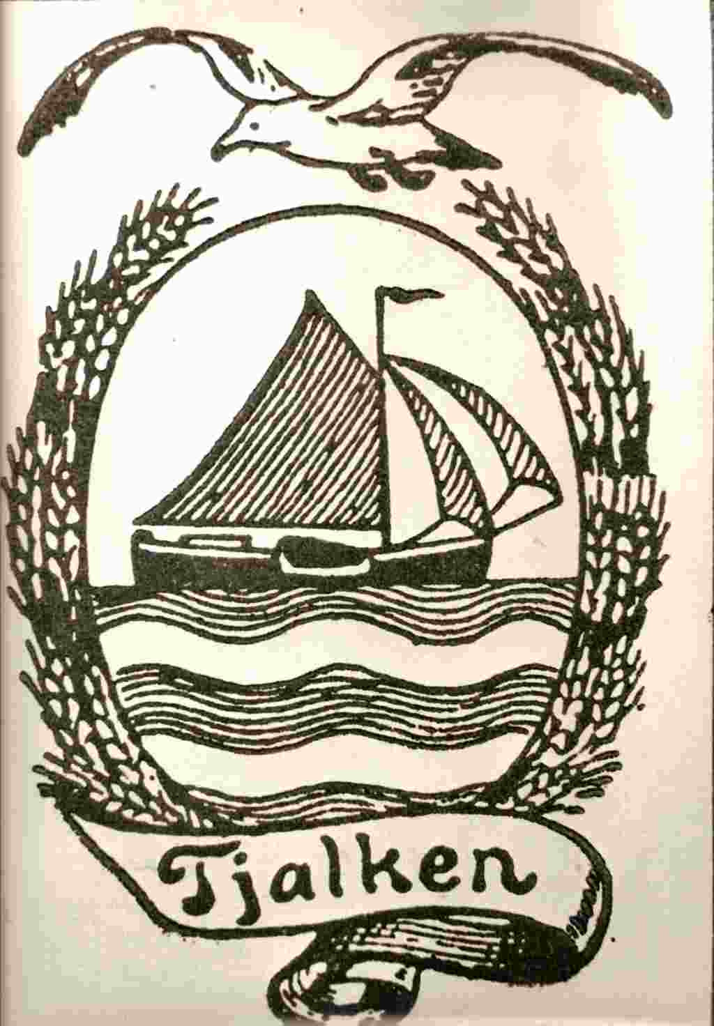 Forfatteren Alexander Svedstrup var økonomisk involveret i etableringen af Tjalken, og han skabte det logo, der har fulgt butikken fra første færd. Logoet indeholder både en hollandsk Tjalk, og den art måge, der også hedder en tjalk. Han opfattede nemlig skibet som en forårsbebuder (romanen Erik Gudmand).