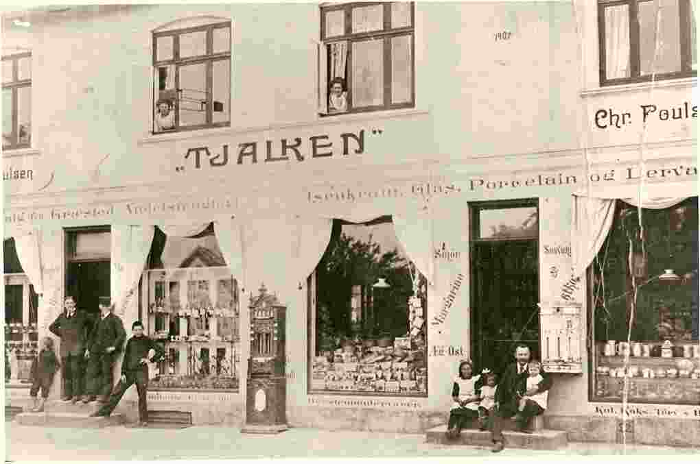 Tjalken kom i familiens eje i 1905, hvor Karl Kristians bedsteforældre Sara og Christian Poulsen overtog butikken. Sara og Christian startede deres købmandsliv i Skovhusene ved Esbønderup. Sara og Christian fik deres første barn, Peter Poulsen i 1905. Samme år som Christian Poulsen købte Tjalken.